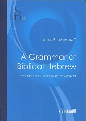 Paul Joüon, A Grammar of Biblical Hebrew, edited and translated by T. Muraoka, Subsidia Biblica.